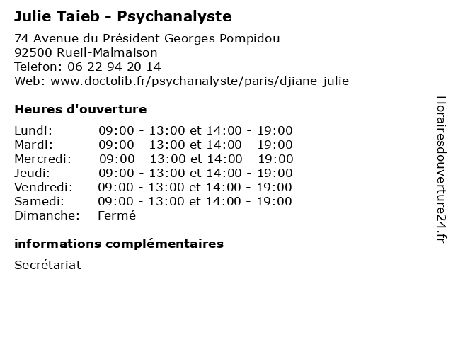 | Lundi | 09:00-13:00 et 14:00-19:00 |