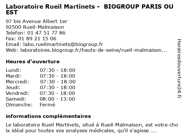 Termes de recherche pour Laboratoire Rueil Martinets - BIOGROUP PARIS OUEST:paris, laboratoire, ouest, rueil, martinets, biogroup, dépistages, laboratoire de diagnostic |