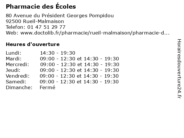 | Mardi | 09:00-12:30 et 14:30-19:30 |