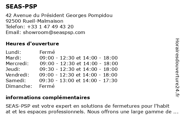 | Mardi | 09:00-12:30 et 14:00-18:00 |