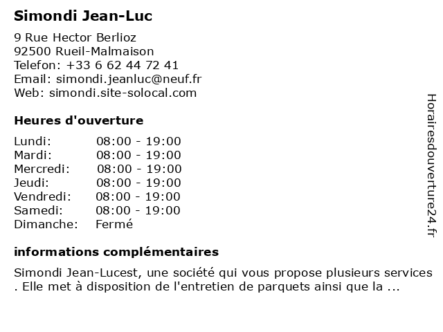 | Lundi | 08:00-19:00 |