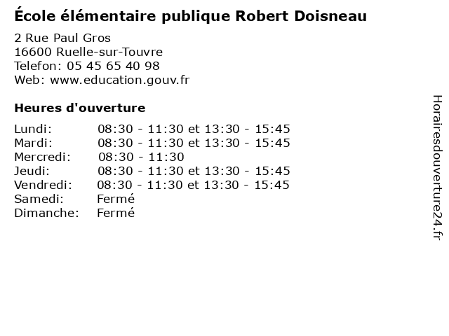 | Mardi | 08:30-11:30 et 13:30-15:45 |