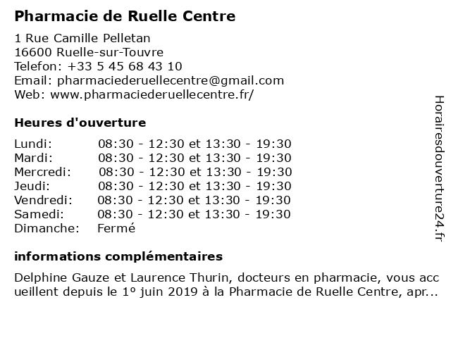 Termes de recherche pour Pharmacie de Ruelle Centre:de, pharmacie, centre, ruelle |