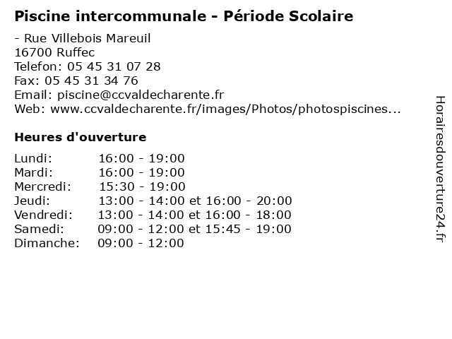 Termes de recherche pour Piscine intercommunale - Période Scolaire:ruffec, piscine, période, scolaire, aqua, aquatique, intercommunale |