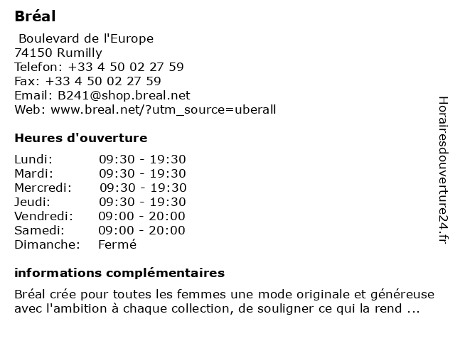 2 Bréal (Distance: 14,78 km) 45 Rue Carnot, 74000 Annecy accessoires, bréal, mode, prêt-à-porter, vêtements 4 Vib's (Cache Cache - Bonobo - Bréal) (Distance: 11,81 km) 67 Boulevard Costa de Beauregard, 74600 Annecy bonobo, bréal, cache, vib's 5 Vib's (Cache Cache - Bonobo - Bréal) (Distance: 11,81 km) 67 Boulevard Costa de Beauregard, 74600 Annecy blazer femme, bonobo, boutique vêtement, bréal, cache, cardignan femme, chaussures femme, gilet femme, jean femme, jean homme, magasin vêtement, magasin vêtements mixte, manteau femme, manteau homme, mode femme, pull femme, pull homme, robe femme, sac femme, t-shirt femme, t-shirt homme, tailleur femme, top femme, vib's, vêtement femme, vêtement homme, vêtement mixte 6 Vib's (Cache Cache - Bonobo - Bréal) (Distance: 13,74 km) 90 Rue des Saules, 74330 Epagny Metz-Tessy bonobo, bréal, cache, vib's |