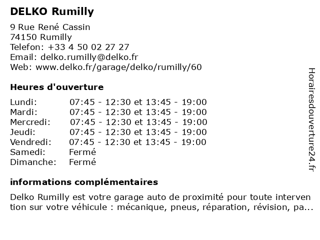 | Lundi | 07:45-12:30 et 13:45-19:00 |
