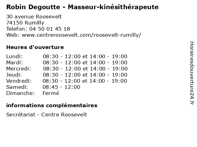 | Jeudi | 08:30-12:00 et 14:00-19:00 |