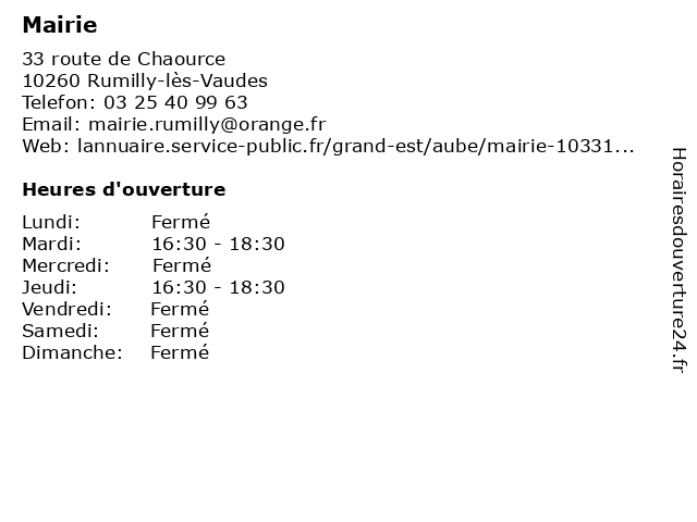 1 Mairie (Distance: 3,43 km) 24 rue Georges-Furier, 10260 Saint-Parres-lès-Vaudes administration, mairie, public, service 4 Mairie (Distance: 7,49 km) 3 place de l'Église, 10270 Fresnoy-le-Château administration, mairie, public, service 6 Mairie (Distance: 8,35 km) 3 place de l'École, 10800 Les Bordes Aumont administration, mairie, public, service |