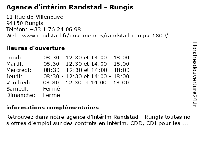 1 Agence d'intérim Randstad - Rungis (Distance: 0,01 km) 11 Rue de Villeneuve, 94150 Rungis agence, agence intérim, agence pour l'emploi, conseils en recrutement, d'intérim, guide des salaires, offres d'emploi, randstad, recrutement intérim, rungis 2 Agence d'intérim Randstad - Rungis Transport (Distance: 0,01 km) 11 Rue de Villeneuve, 94150 Rungis agence, agence intérim, agence pour l'emploi, conseils en recrutement, d'intérim, guide des salaires, offres d'emploi, randstad, recrutement intérim, rungis, transport 3 Partnaire Intérim (Distance: 8,92 km) 140 avenue d'Italie, 75013 Paris agence, interim, intérim, partnaire 4 Partnaire Intérim (Distance: 9,54 km) 66 rue Cantagrel, 75013 Paris agence, interim, intérim, partnaire 6 |