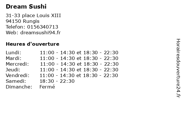| Lundi | 11:00-14:30 et 18:30-22:30 |