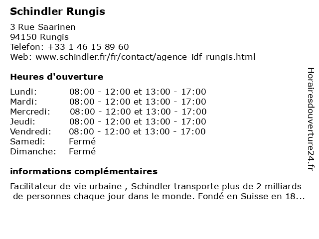 Termes de recherche pour Schindler Rungis:rungis, schindler |