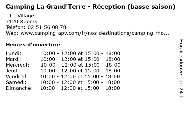 Termes de recherche pour Camping La Grand'Terre - Réception (basse saison):la, hebergement, basse, camping, saison, tourisme, réception, grand'terre |