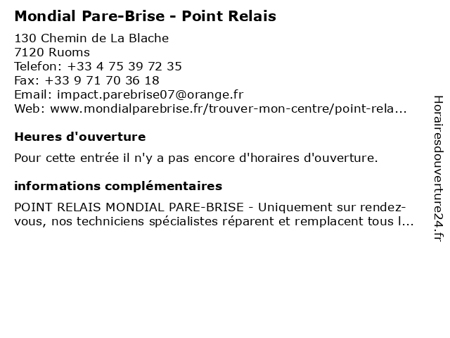 | Appeler Mondial Pare-Brise - Point Relais | |