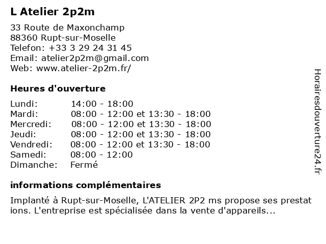 | Mardi | 08:00-12:00 et 13:30-18:00 |