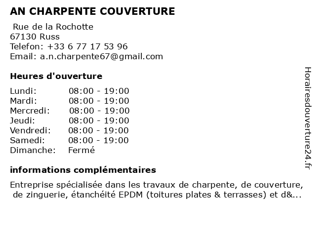 1 Entreprise Charpente Zanetti SARL (Distance: 1,28 km) 54 Route d'Obernai, 67130 Russ charpente, entreprise, sarl, zanetti 3 Amann Couverture (Distance: 14,90 km) 9 Rue de la Fontaine, 67530 Bœrsch amann, couverture, couvreur, rénovation, toiture, travaux, étanchéité 4 Couverture-Zinguerie Kœnig (Distance: 16,52 km) 28 Rue Principale, 67140 Heiligenstein couverture, couvreur, kœnig, rénovation, toiture, travaux, zinguerie, étanchéité 5 Silicium Solaire & Couverture (Distance: 17,13 km) 6 Rempart Maréchal Joffre, 67210 Obernai couverture, photovoltaïque, silicium, solaire, toiture, travaux 6 Mathieu Couverture (Distance: 19,50 km) 9 Rue de l'Énergie, 67870 Griesheim-prés-Molsheim couverture, couvreur, mathieu, rénovation, toiture, travaux, étanchéité |