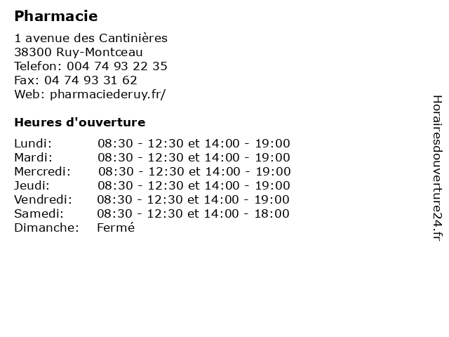 | Lundi | 08:30-12:30 et 14:00-19:00 |