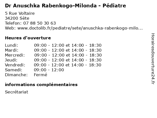 | Lundi | 09:00-12:00 et 14:00-18:30 |