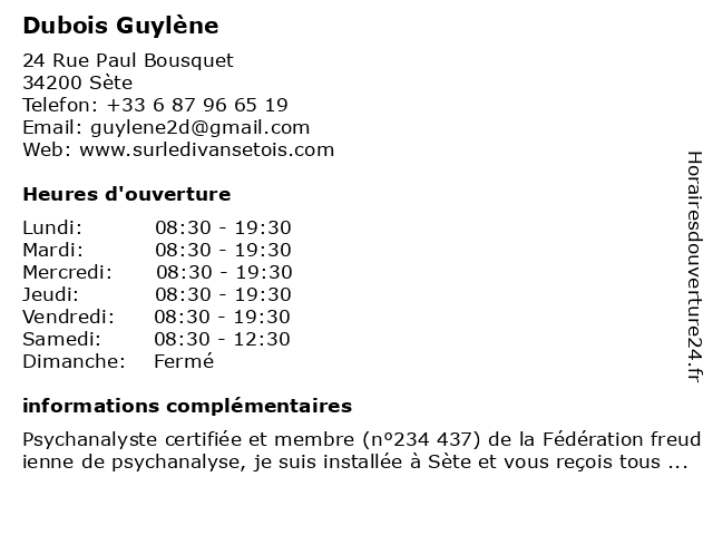 1 Pharmacie Dubois (Distance: 21,34 km) 2, rue gratien boyer, 34430 Saint-Jean-De-Védas dubois, la médecine, la pharmacie, la santé, les soins, pharmacie 2 Dubois Sas - Groupauto (Distance: 24,34 km) . Rue de Montels Église, 34970 Lattes accessoires, auto, dubois, groupauto, magasin, outillage, pieces, sas, équipements 3 Boucherie Dubois Jérôme (Distance: 24,76 km) 162 Rue Georges Brassens, 34070 Montpellier boucherie, charcuterie, dubois, jérôme, traiteur, viande, volaille 4 Dr Karim Dubois - Médecin généraliste (Distance: 25,50 km) - Zone Plein Sud RD39, 34120 Tourbes docteur, dr, dubois, generaliste, généraliste, karim, medecin, médecin, soins 5 Aude Dubois - Hypnothérapeute (Distance: 26,07 km) 10 rue du Porche, 34150 La Boissiere aude, dubois, hypnose, hypnotherapeute, hypnothérapeute, sante, soins 6 |