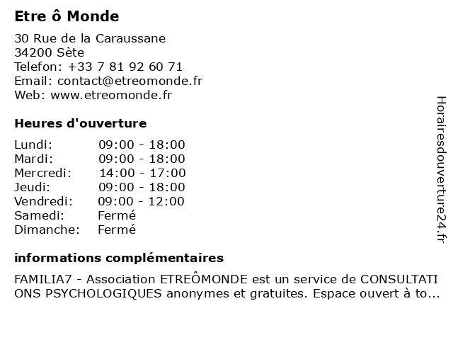 | Samedi | Fermé |
