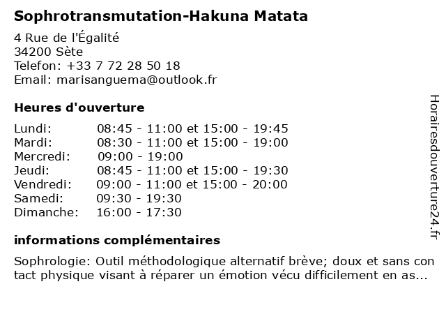 Images pour l'entreprise Sophrotransmutation-Hakuna Matata à Sète