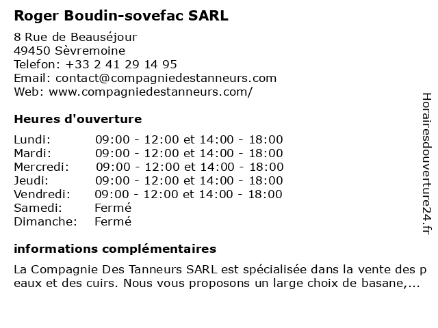 Termes de recherche pour Roger Boudin-sovefac SARL:sarl, roger, boudin, sovefac |