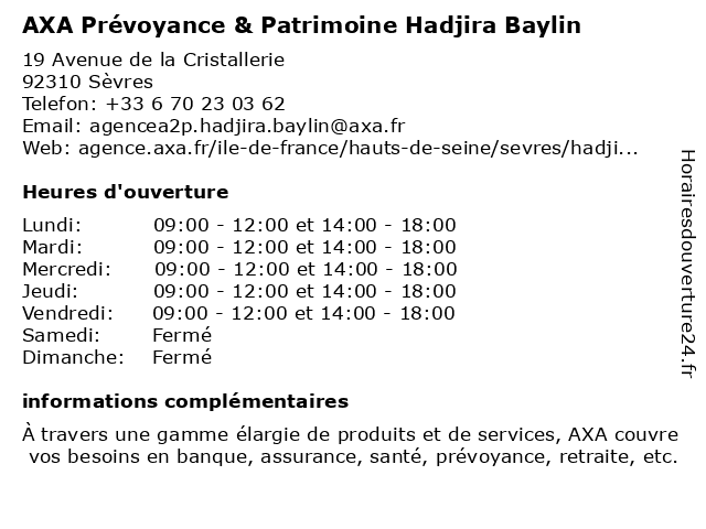 | Lundi | 09:00-12:00 et 14:00-18:00 |