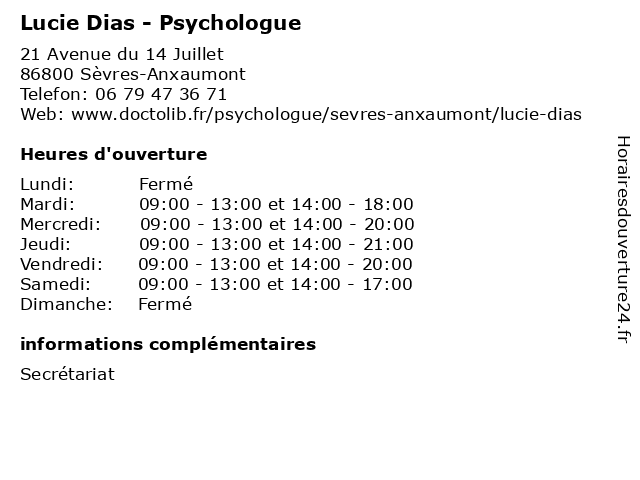 | Mardi | 09:00-13:00 et 14:00-18:00 |