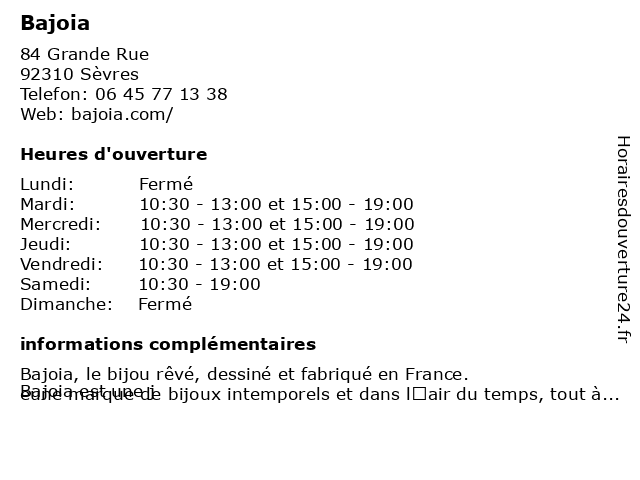 Mercredi | 10:30-13:00 et 15:00-19:00 |
