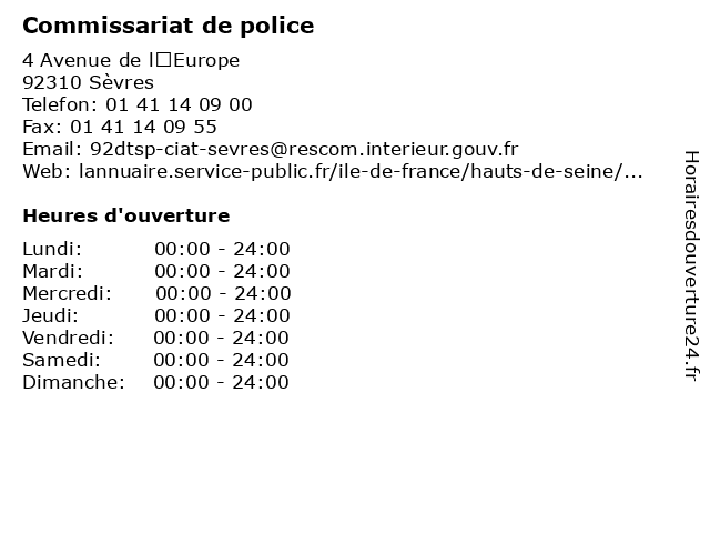 1 Commissariat de police (Distance: 2,55 km) 27 rue Dailly, 92210 Saint-Cloud commissariat, de, police, saint-cloud 2 Commissariat de police (Distance: 2,65 km) 94 rue de Paris, 92190 Meudon commissariat, de, meudon, police 3 Commissariat de police (Distance: 4,45 km) 22 avenue Victor Cresson, 92130 Issy-les-Moulineaux commissariat, de, issy-les-moulineaux, police 4 Commissariat de police (Distance: 5,15 km) 1 Place du Moutier, 92150 Suresnes commissaire, commissariat, de, justice, police, sécurité 5 Commissariat de police (Distance: 5,91 km) 13 Rue Charles-Floquet, 92500 Rueil-Malmaison commissaire, commissariat, de, justice, police, sécurité 6 Commissariat de police (Distance: 7,01 km) 2 rue Chante Coq, 92800 Puteaux commissariat, de, police, puteaux |
