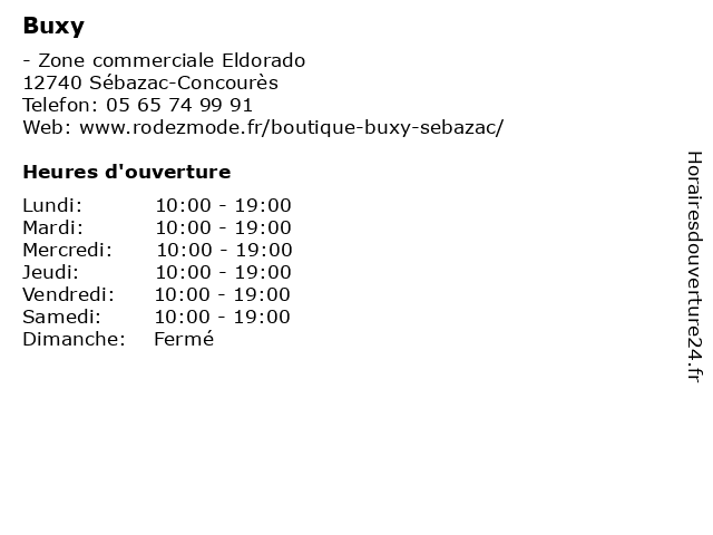 1 Buxy (Distance: 6,10 km) 1 Place de la Cité, 12000 Rodez accessoires, boutique, buxy, habillement, mode, vêtements 2 Buxy (Distance: 6,19 km) 4 rue Monteil, 12000 Rodez accessoires, boutique, buxy, habillement, mode, vêtements 3 STAR TROC (Distance: 0,16 km) Route d'Argent, 12740 Sébazac-Concourès accessoires d'occasion, articles d'occasion, meubles rénovés, star, troc, vide-grenier dans l'aveyron, vélos d'occasion 4 La Halle Mode aux Enfants (Distance: 0,17 km) - Zone de l'Eldorado, 12740 Sébazac-Concourès aux, chaussures, enfants, femme, halle, homme, la, magasin, mode, vetement 5 Vib's (Cache Cache - Bonobo - Bréal) (Distance: 0,21 km) 1180 Avenue Joël Pilon, 12740 Sébazac-Concourès blazer femme, bonobo, boutique vêtement, bréal, cache, cardignan femme, chaussures femme, gilet femme, jean femme, jean homme, magasin vêtement, magasin vêtements mixte, manteau femme, manteau homme, mode femme, pull femme, pull homme, robe femme, sac femme, t-shirt femme, t-shirt homme, tailleur femme, top femme, vib's, vêtement femme, vêtement homme, vêtement mixte 6 Kaporal (Distance: 0,49 km) 250 Avenue Joel Pilon, 12850 Onet-le-Château femme, homme, jeans, kaporal, mode, pantalons, tendances, vetements |