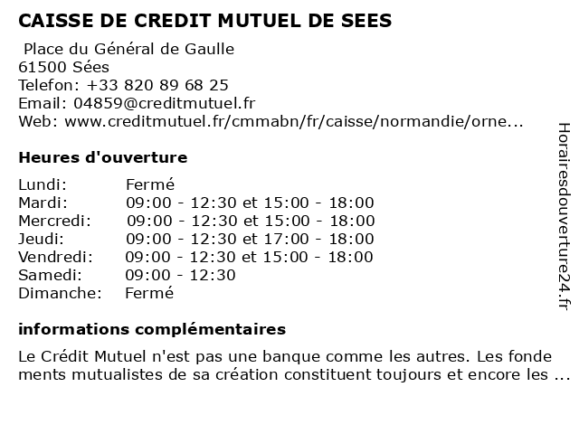 Termes de recherche pour CAISSE DE CREDIT MUTUEL DE SEES:de, crédit, mutuel, caisse, sées |