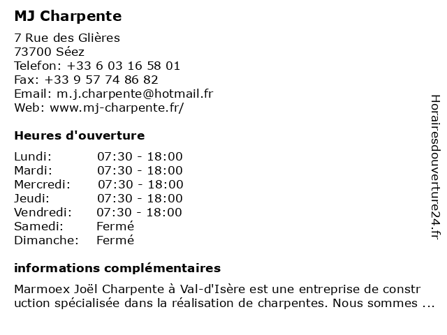 1 Haute Tarentaise Menuiserie Charpente SAS (Distance: 8,77 km) le Chavarnier 200 route des Trembles, 73640 Sainte foy tarentaise charpente, haute, menuiserie, sas, tarentaise 2 Charpenterie Buet (Distance: 3,72 km) ZAC des Colombières, 73700 Bourg Saint Maurice buet, charpente, charpenterie, charpentier, couverture, zinguerie 3 Michel Monin SAS (Distance: 26,20 km) 172 route des Lacs, 73260 Feissons-sur-Isère charpente, fermetures, menuiserie, michel, monin, rénovation, sas, vitrerie 4 M.B.Charpente (Distance: 30,90 km) 105 Chemin de la Côte du Mont, 74400 Chamonix Mont-Blanc architecte, constructeur, m.b.charpente, mise en oeuvre, projet, service 5 Menuiserie Lenoble (Distance: 34,00 km) 1100 Rue Gustave Eiffel, 73200 Gilly-sur-Isère bois, charpente, construction, couverture, lenoble, menuiserie, travaux 6 Sabaudia Charpente (Distance: 34,44 km) 553 Chemin des Marais, 73200 Gilly-sur-Isère bois, charpente, construction, couverture, menuiserie, sabaudia, travaux |
