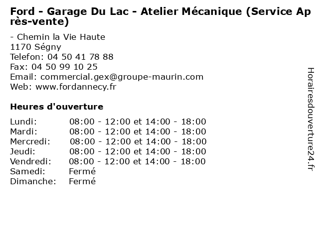 1 Ford - Garage Du Lac - Atelier Mécanique (Service Après-vente) (Distance: 18,44 km) - Allée du Mousseron des Prés, 74100 Ville-la-Grand après, atelier, du, ford, garage, lac, mécanique, révisions, service, services, services d'automobiles, vente 2 Ford - Garage Du Lac - Véhicules Neufs (Service Après-vente) (Distance: 0,00 km) - Chemin la Vie Haute, 01170 Ségny après, du, ford, garage, lac, neufs, révisions, service, services, services d'automobiles, vente, véhicules 3 Ford - Garage Du Lac - Véhicules d'Occasion (Service Après-vente) (Distance: 0,00 km) - Chemin la Vie Haute, 01170 Ségny après, d'occasion, du, ford, garage, lac, révisions, service, services, services d'automobiles, vente, véhicules 4 Ford - Garage Du Lac - Ford Entreprise (Service Après-vente) (Distance: 0,00 km) - Chemin la Vie Haute, 01170 Ségny après, du, entreprise, ford, garage, lac, révisions, service, services, services d'automobiles, vente 5 Ford - Garage Du Lac - Atelier de Carrosserie (Service Après-vente) (Distance: 0,00 km) - Chemin la Vie Haute, 01170 Ségny après, atelier, carrosserie, de, du, ford, garage, lac, révisions, service, services, services d'automobiles, vente 6 Ford - Garage Du Lac - Magasin (Service Après-vente) (Distance: 0,00 km) - Chemin la Vie Haute, 01170 Ségny après, du, ford, garage, lac, magasin, révisions, service, services, services d'automobiles, vente |