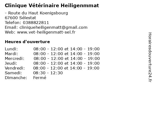 | Mercredi | 08:00-12:00 et 14:00-19:00 |