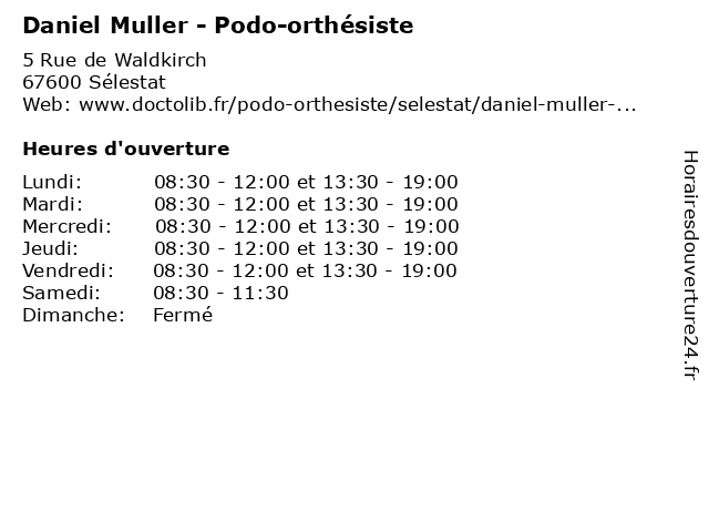 | Lundi | 08:30-12:00 et 13:30-19:00 |