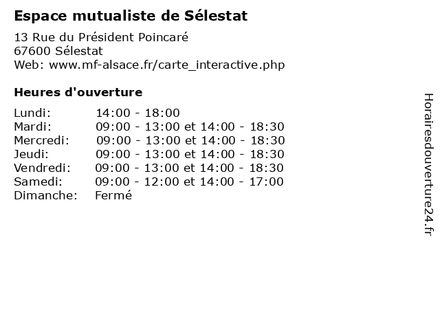 | Mercredi | 09:00-13:00 et 14:00-18:30 |