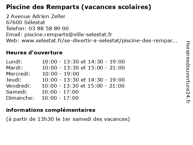 | Mardi | 10:00-13:30 et 15:00-21:00 |