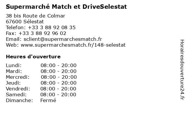 1 Match Station Service (Distance: 0,01 km) 38 bis Route de Colmar, 67600 Selestat carburant, essences, gazole, match, service, services, station 2 Supermarche Match (Distance: 0,20 km) 38 Route de Colmar, 67600 Selestat boucherie, boulangerie, charcuterie, fruits, match, supermarche 3 Supermarche Match (Distance: 17,29 km) 15 Route du Hohwald, 67140 Barr boucherie, boulangerie, charcuterie, fruits, match, supermarche 4 Supermarche Match (Distance: 17,70 km) 63 Route de Lapoutroie, 68240 Kaysersberg boucherie, boulangerie, charcuterie, fruits, match, supermarche 5 Auchan Supermarché Colmar (Distance: 19,50 km) Avenue D'alsace, 68000 COLMAR auchan, colmar, supermarché 6 Supermarché Colruyt (Distance: 19,59 km) 3 Rue de Vienne, 68180 Horbourg-Wihr aliment, alimentaire, alimentation, bio, bière, bières, boucher, boucherie, charcuterie, colruyt, courses, frais, fruits, légumes, magasin, pain, primeur, sandwich, supermarché, viennoiseries, vin |