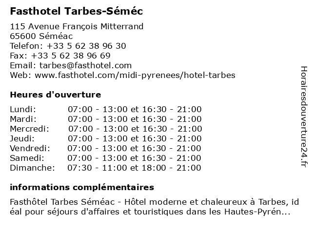 | Mardi | 07:00-13:00 et 16:30-21:00 |