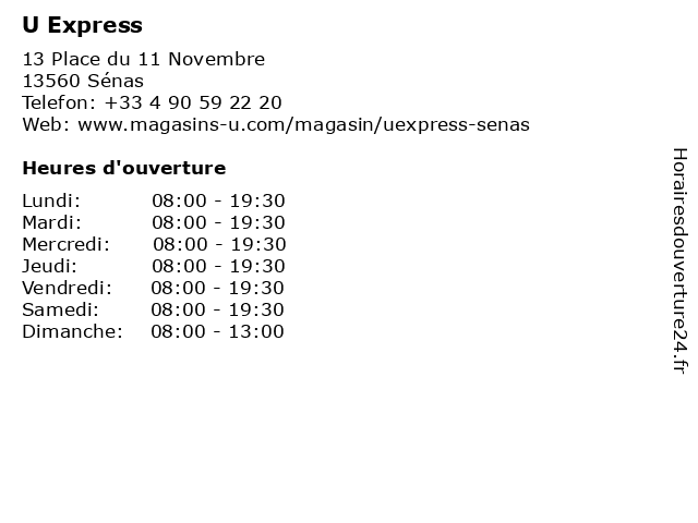 2 U Express (Distance: 16,37 km) - Zone Artisanale Camp Jouven, 13450 Grans express, magasin, nourriture, supermarché 3 U Express Location (Distance: 0,14 km) - place Auguste Jaubert, 13560 Sénas express, location, transport, utilitaire, véhicule 5 MT EXPRESS THIERRY MATHIEU (Distance: 9,08 km) 15 Avenue Pierre Grand, 84300 Cavaillon express, mathieu, mt, thierry, transport de fret, transport tous types de marchandises hors alimentaire, transporteur de marchandises, transporteurs de fret dans le vaucluse 6 Coccinelle Express (Distance: 9,42 km) 65 Route de Marseille, 13750 Plan-d'Orgon alimentation, coccinelle, express, supermarché, supérette, épicerie |