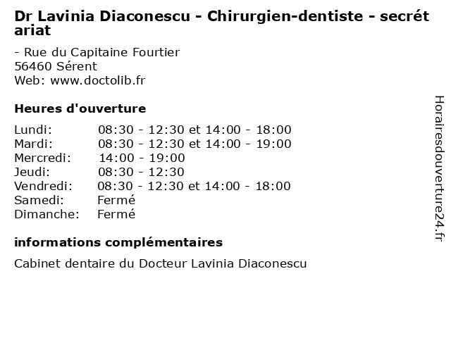 | Lundi | 08:30-12:30 et 14:00-18:00 |