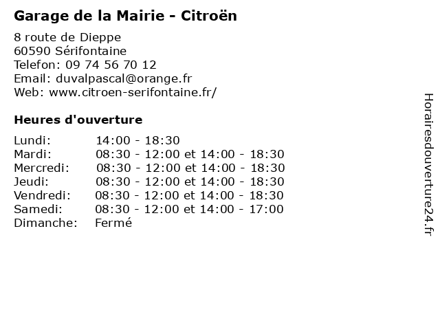 | Mardi | 08:30-12:00 et 14:00-18:30 |