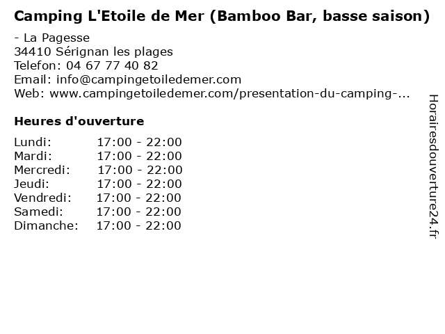 | Dimanche | 17:00-22:00 |