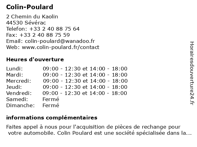Lundi | 09:00-12:30 et 14:00-18:00 |