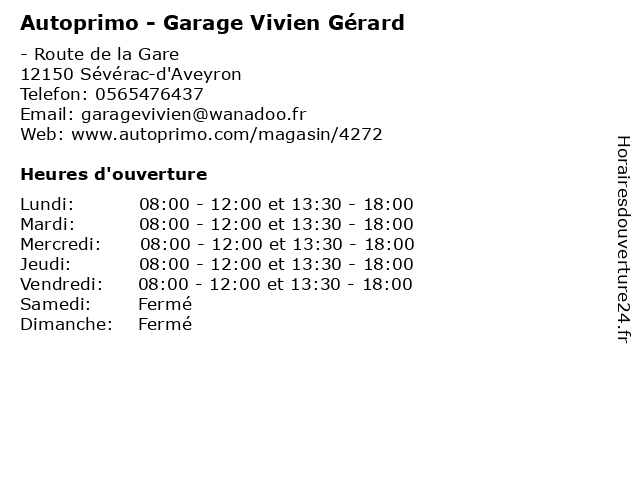 | 1 Bernié Gérard EURL (Distance: 1,33 km) Zr de la Salle, 12130 Saint geniez d'olt et d'aubrac bernié, eurl, gérard 3 4 Autoprimo - Garage Calatayud (Distance: 26,10 km) 57 Avenue de la République, 48100 Le Monastier-Pin-Moriès automobile, autoprimo, calatayud, entretien, garage, montage, pneus, réparation, vente 5 Autoprimo - Garage Lavaur (Distance: 31,83 km) - Le Pont Neuf, 12470 Saint-Chély-d'Aubrac atelier, automobile, autoprimo, carrosserie, concession, entretien, garage, lavaur, réparation 6 Autoprimo - Garage Frederic Gravil (Distance: 33,59 km) - route de Mende, 48150 Meyrueis atelier, automobile, autoprimo, carrosserie, concession, entretien, frederic, garage, gravil, réparation |