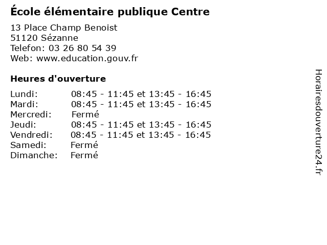 | Lundi | 08:45-11:45 et 13:45-16:45 |