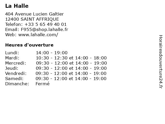| Samedi | 09:30-12:00 et 14:00-19:00 |