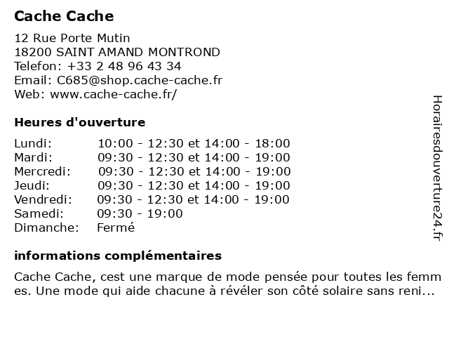 | Mardi | 09:30-12:30 et 14:00-19:00 |