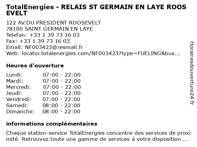 Termes de recherche pour TotalEnergies - RELAIS ST GERMAIN EN LAYE ROOSEVELT:relais, en, st, germain, laye, total, roosevelt, gas station, station service, tankstelle, totalenergies |