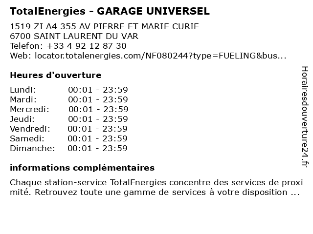 Termes de recherche pour TotalEnergies - GARAGE UNIVERSEL:garage, total, gas station, station service, universel, tankstelle, totalenergies |
